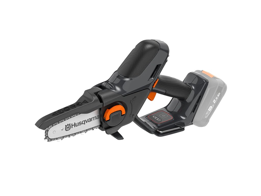 Kompaktní ruční akumulátorová prořezávací pilka, ideální pro prořezávání stromů, odstraňování nežádoucích dřevin a menší tesařské práce. Tato malá, ale všestranná prořezávací řetězová pila je dostatečně robustní, aby snadno řezala větve o šířce 75 mm. Protiskluzová rukojeť a automatické vypnutí při ponechání bez dozoru zvyšují bezpečnost při používání pily. Výměna řetězu a lišty je snadná bez použití nářadí. Pilka použivá akumulátor z 18V akumulátorového systému aliance POWER FOR ALL, díky kterému lze jeden akumulátor použít pro nástroje a vybavení více značek. Uskladnění v menších prostorech je usnadněno přibaleným háčkem vyrobeným na míru, který lze připevnit na zeď nebo použít se systémem úložných kolejnic Husqvarna Aspire™. Řetězový Bio olej je součástí balení (50 ml).